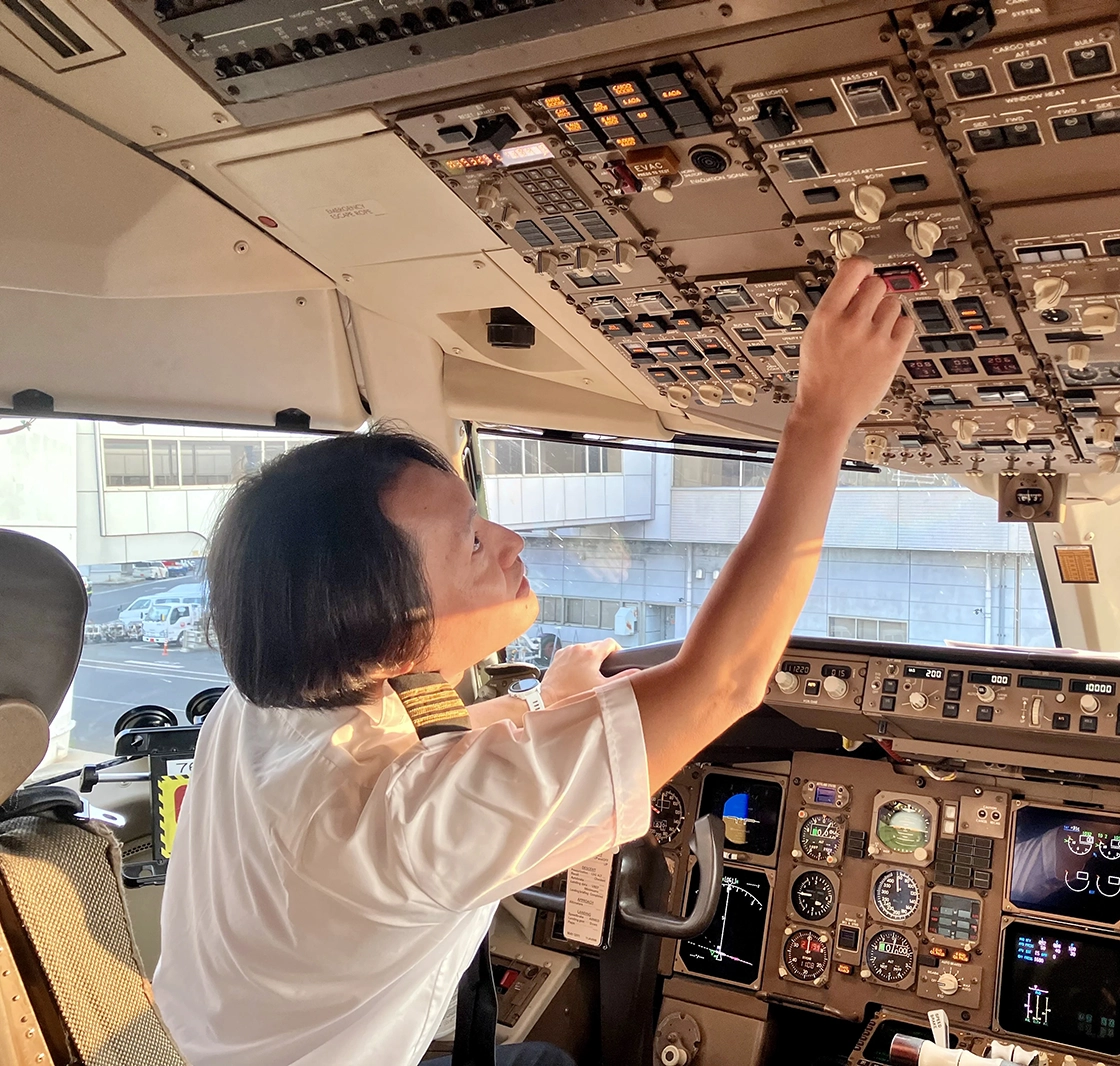 2004年入社。2008年、767型機でパイロットデビュー。以降、787型機の乗務を経て2023年に767型機の機長に昇格。パイロット経歴の大半が767型機と共にある。