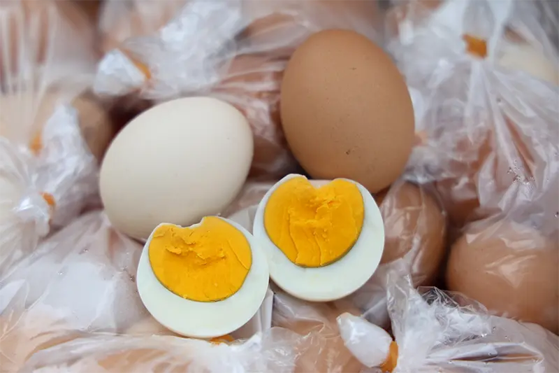 黄身の色が濃い蒸したての温泉たまごは、熱々を食べるのが醍醐味。