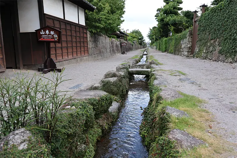 湧水が流れる水路と石垣が往時のまま残る武家屋敷町並み保存地区。山本邸、篠塚邸、鳥田邸の3軒が無料で公開されている。