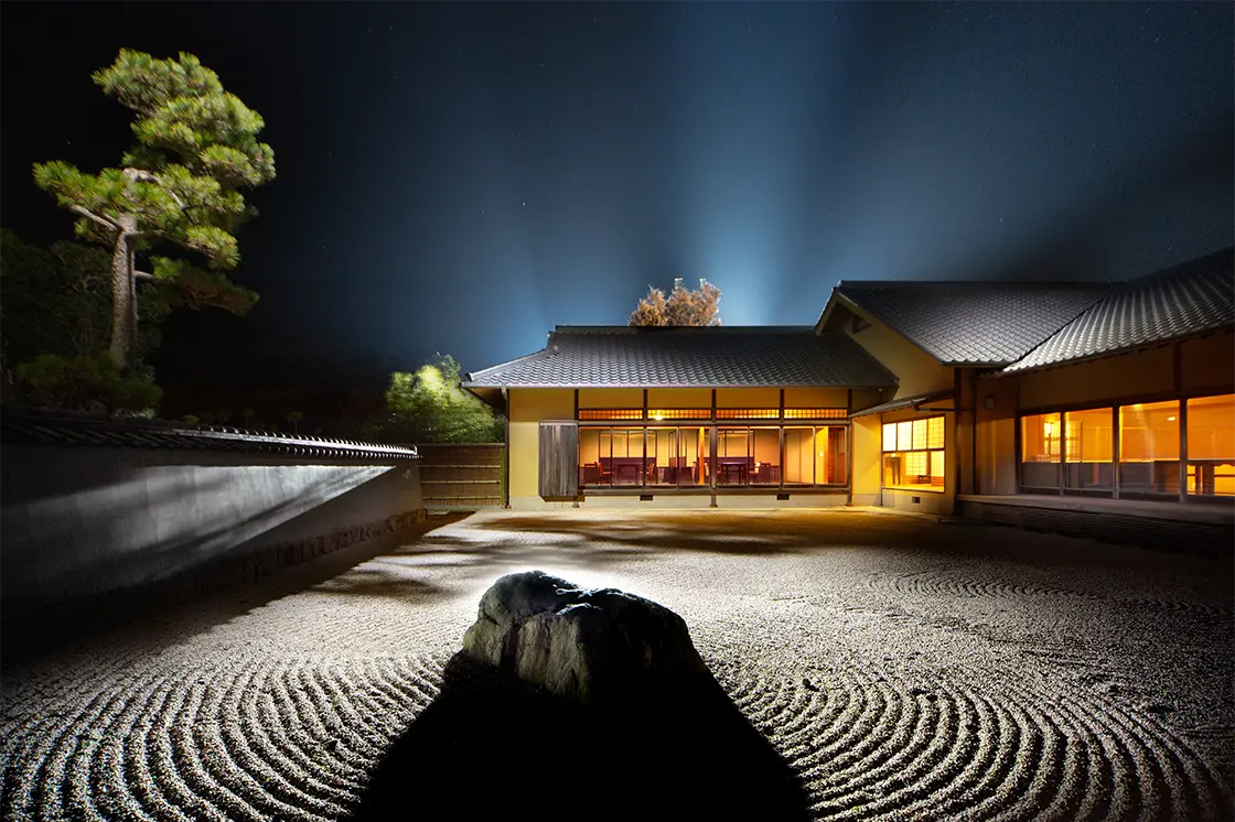 約7万坪にわずか9室。静けさとゆとりを何よりも大切にしたこのホテルのコンセプトは、「五感の至福」。広大な敷地には、美食を堪能できる二つのダイニング、自然の中で心と体を整えるスパ、登録有形文化財「三井翠松園別館」など、自然の中で感覚をひとつずつほどいていくような、多彩な“上質”に触れられる。