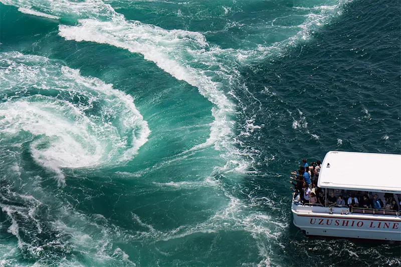 鳴門海峡の自然が生むダイナミックな渦潮を間近に体験できる「うずしお観潮船」。