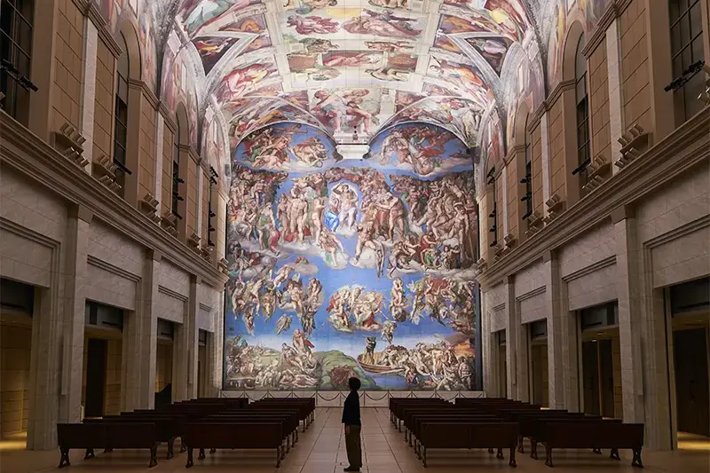 世界26か国、190余の美術館が所有する1000余点の名画を陶板で再現した大塚国際美術館の「システィーナ・ホール」。